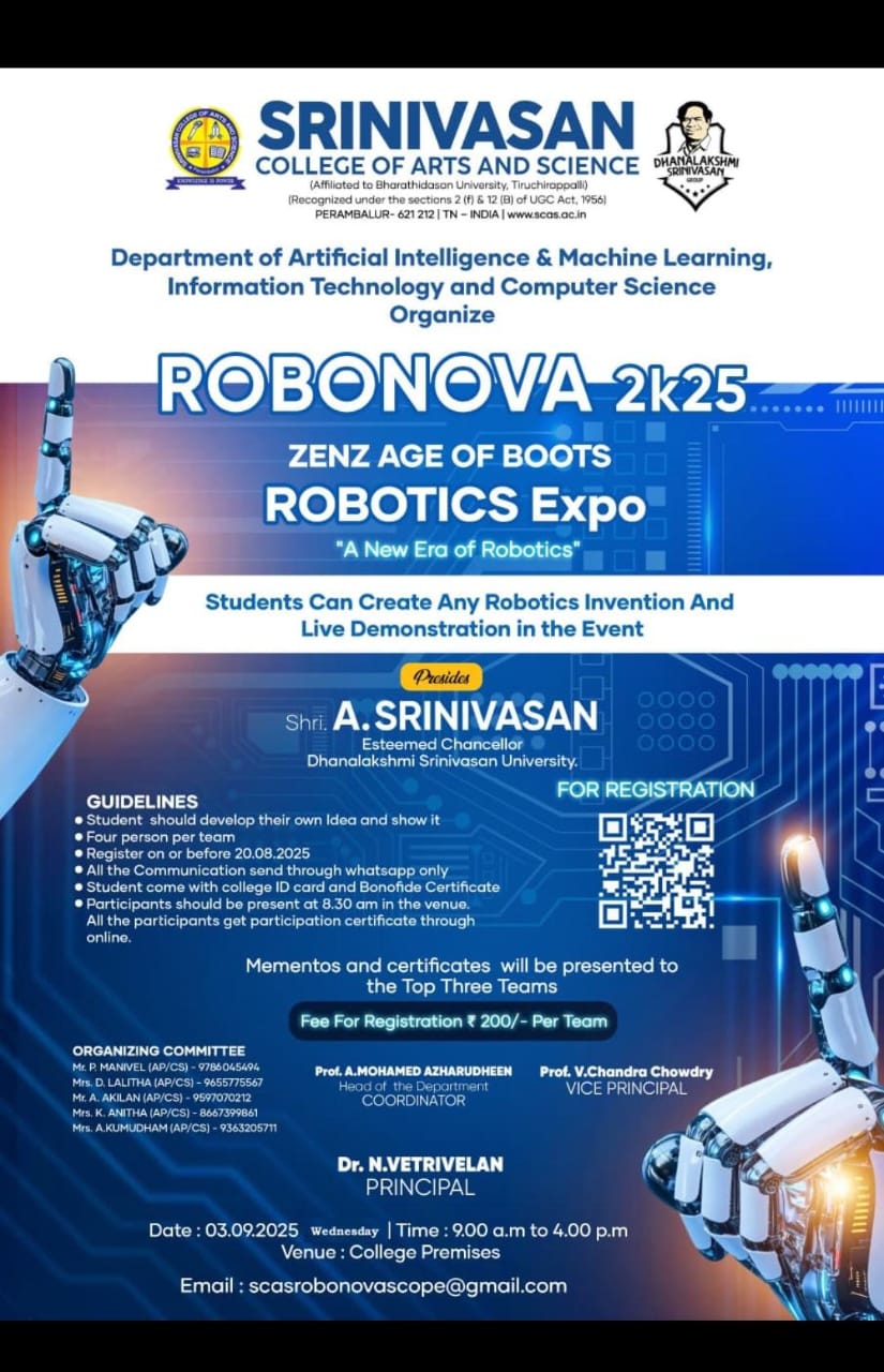 Srinivasan College of Arts & Science was established by Shri.A. Srinivasan, Esteemed Chancellor, Dhanalakshmi Srinivasan University.. The trust was registered on 18th January 1994 under the Tamilnadu Societies Act.