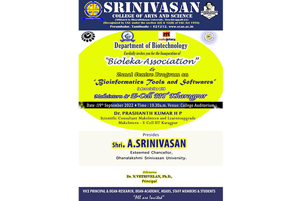 Department of Biotechnology is pleased to organize the inauguration on Bioleka Association & zonal programme on "Bioinformatics tools and software" in association with Makeinturn & e- cell, IIT Karaghpur.