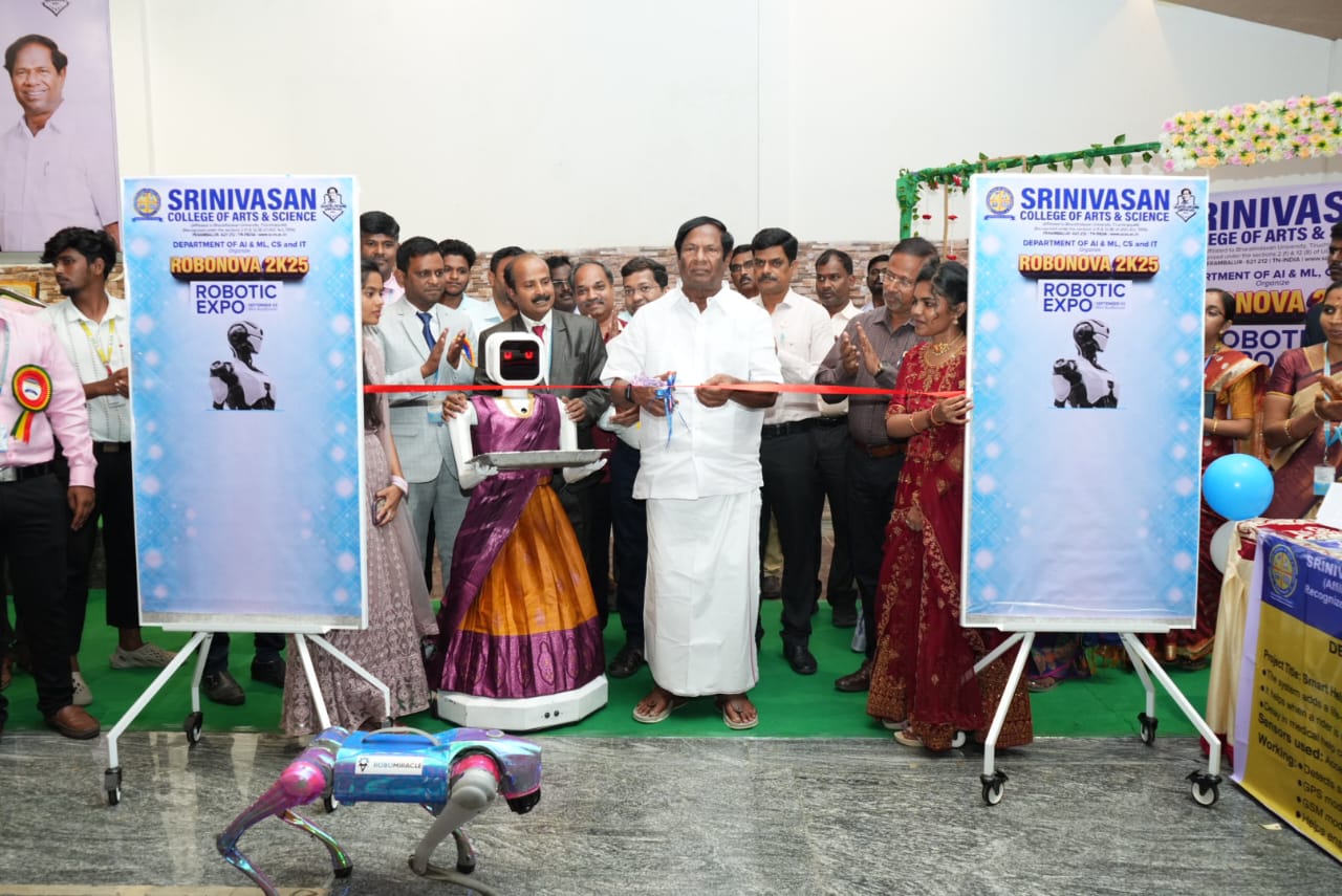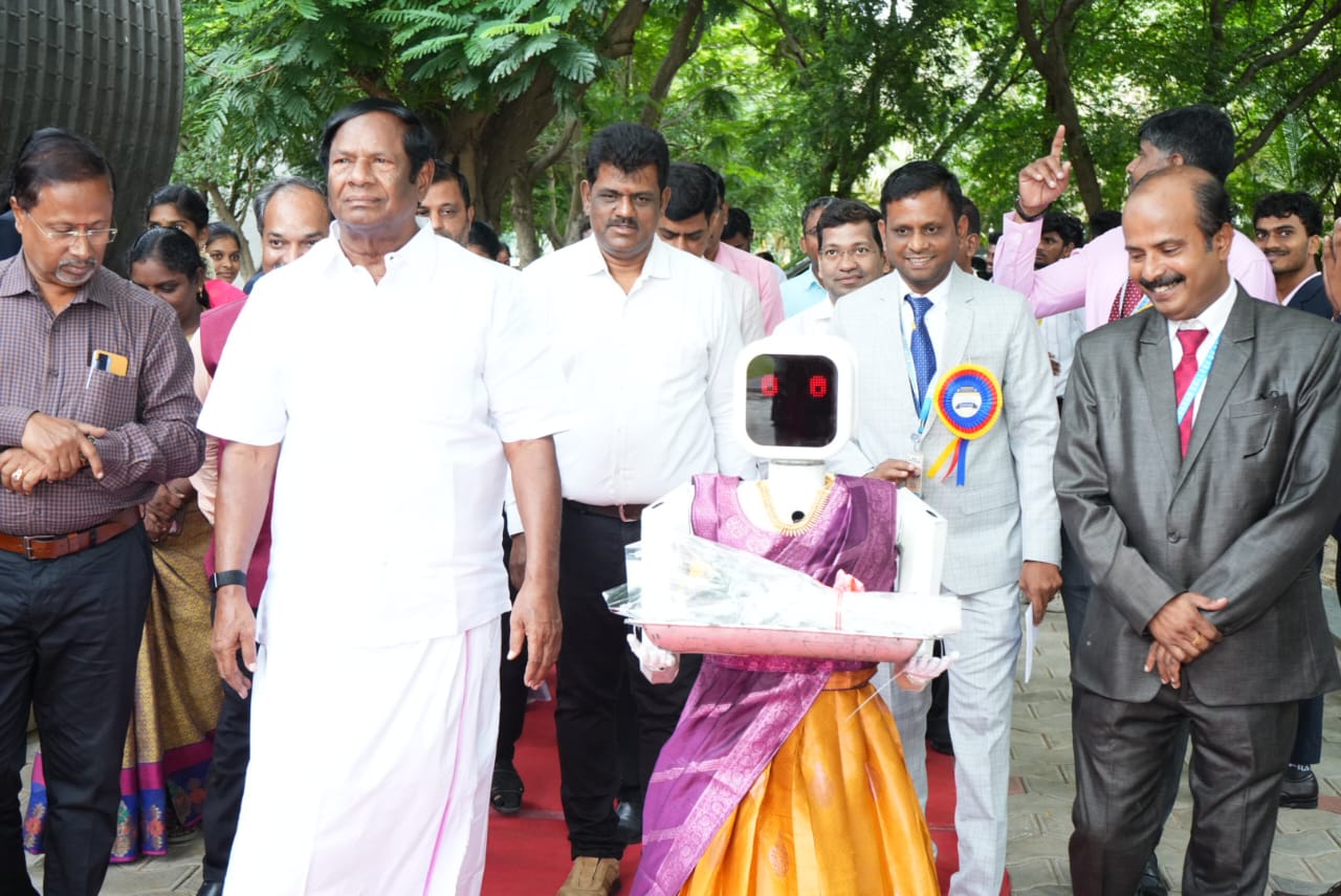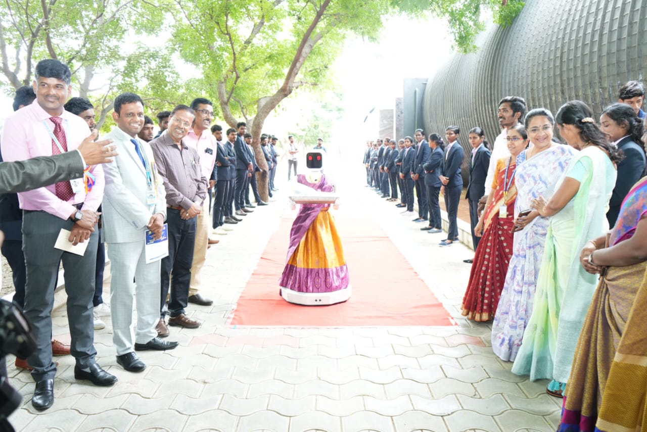 The *humanoid robot Nila and Subramani* welcomed our Esteemed Chancellor Ayya for the Robonova 2K25