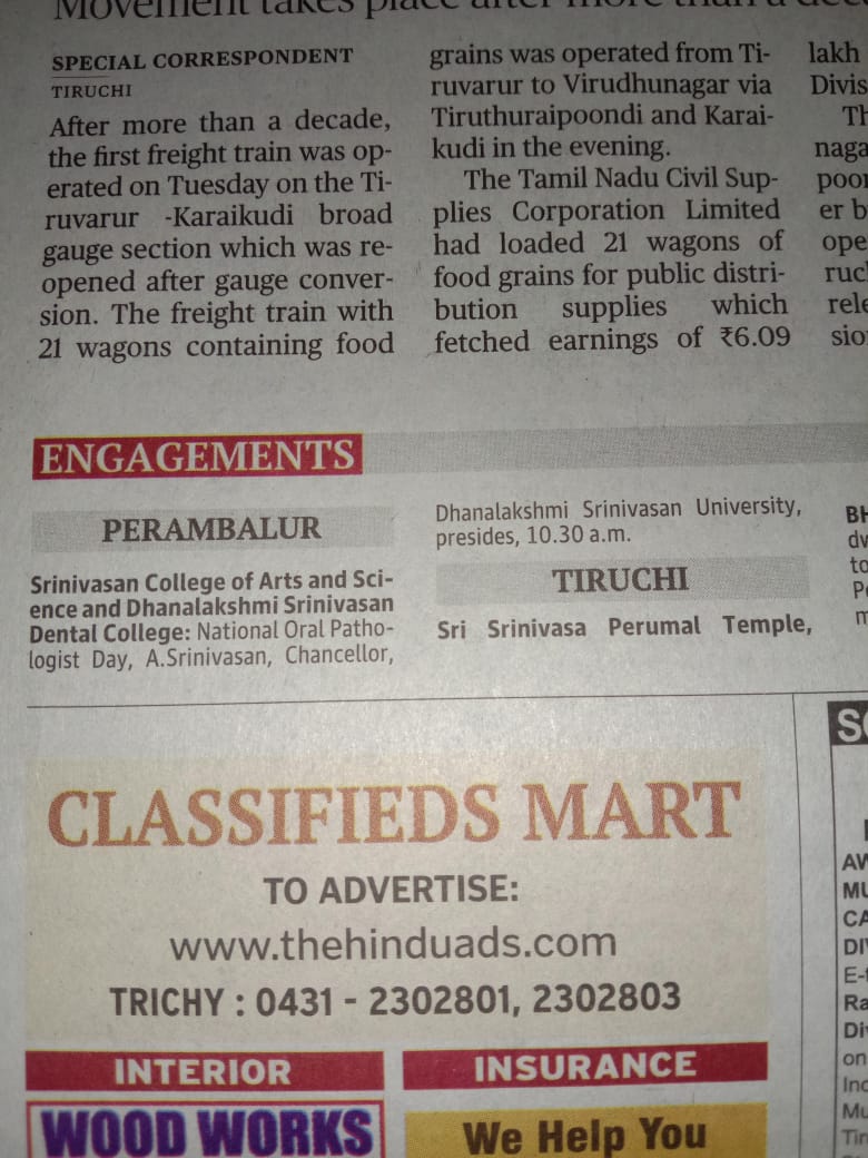 Srinivasan College of Arts and Science, will be held on 22.11.2025 (Saturday) at 8.30 A.M @